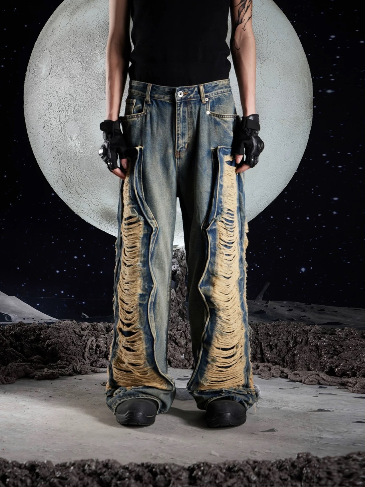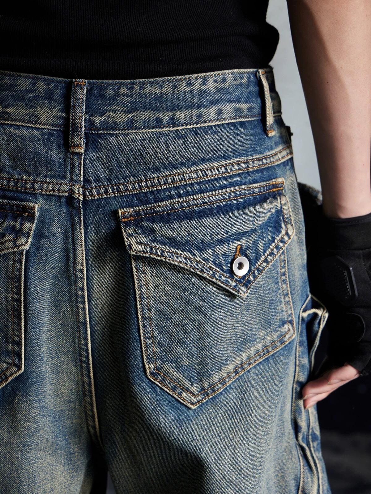 DUTY WASHED DENIM PANTS-BLUE
