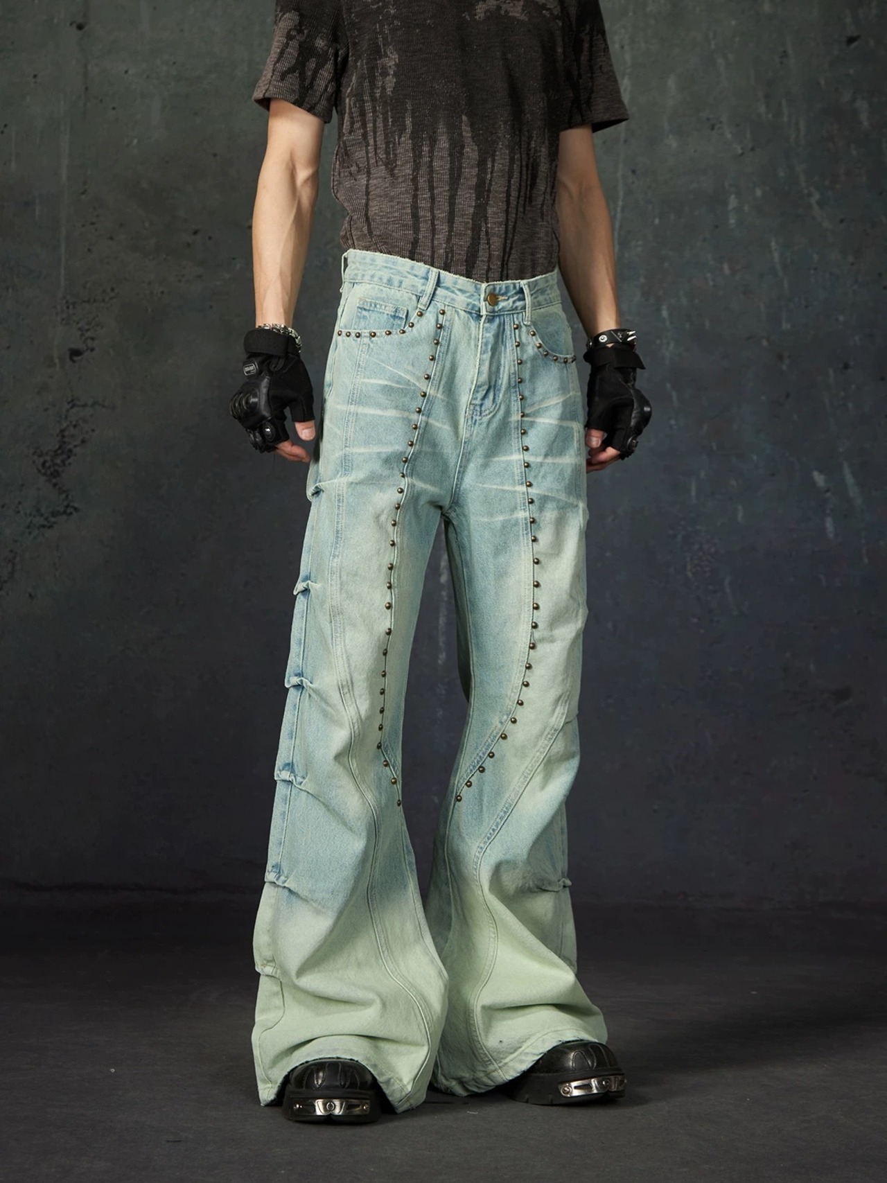 STUDDED DENIM PANTS